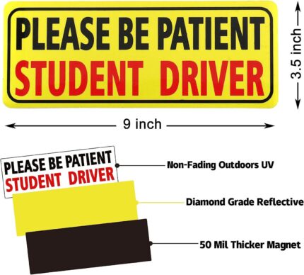 SPECIAL DESIGN: JUSTTOP’s student driver car sign is crafted with black and red lettering that perfectly combined with a yellow